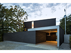 墨色のストイックな表情と中庭のコントラストが際立つコートハウス