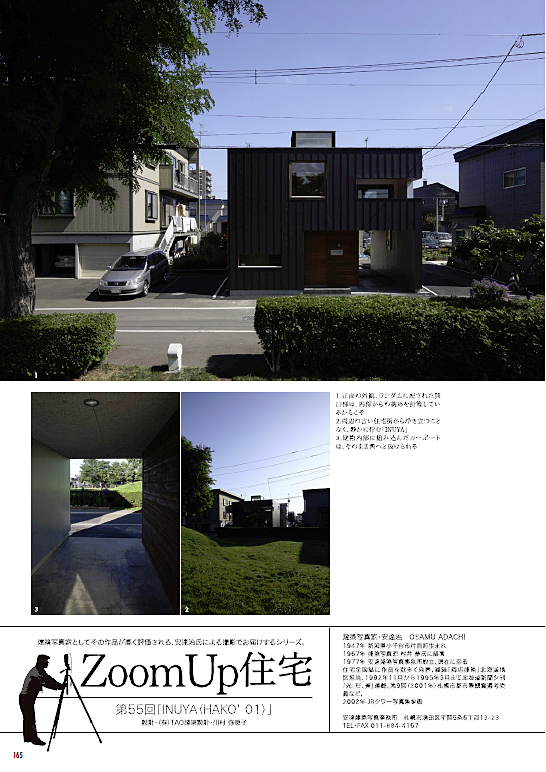 ハイサイドライトをもったキューブへの外部空間の挿入の仕方、開口部の取り方を変えることで、このプランは様々な敷地、与条件に対応可能となる。都市型住居の1つのプロトタイプの提案として、(HAKO'01)と名付けた。