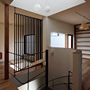 住宅の中心を貫くらせん階段と、それを上から照らすハイサイドライト